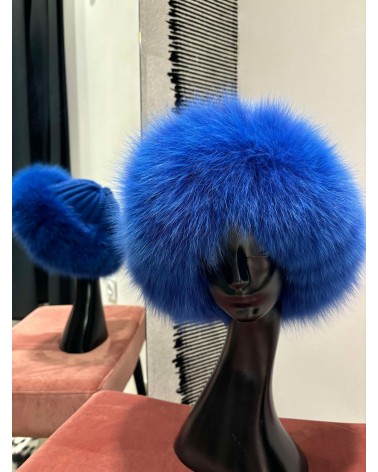 • Toque en laine cachemire bordée de fourrure de renard.