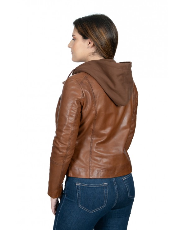 Blouson en cuir d'agneau à capuche (amovible).